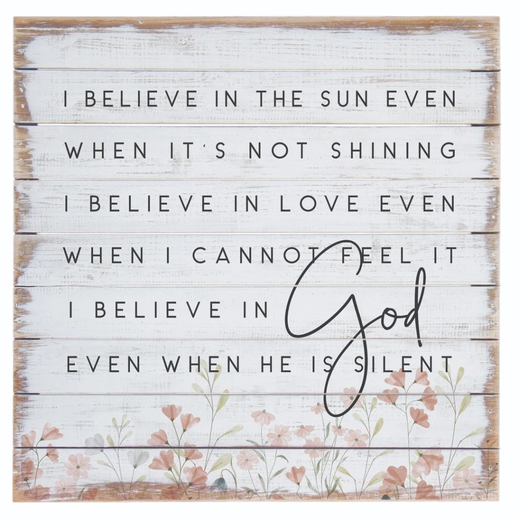 But I promise you, that these things God places in our lives are indeed working for our good. There are so many moments I can look back on from the past, and think to myself, “Oh, so that’s what He was doing.” One of my favorite quotes from C.S. Lewis is, “I believe in Christ like I believe in the Sun, not because I can see it, but by it, I can see everything else.” I love this quote, because it emulates the main message of 2 Corinthians 5:7: “For we walk by faith, not by sight.” We expect God to do things to answer our prayers immediately, and right away because that’s how our world is, if we want something done, we get it done right away. But we forget that God is not of this world; his ways are higher than our ways, and his timing is flawless. We need to trust God and remember that, as Proverbs 23:18 says, “There is surely a future hope for you, and your hope will not be cut off.” For if God is for us, who can be against us? Trust in and wait upon the Lord; he hears your prayers, and he will answer them in a more amazing way than you could ever imagine.